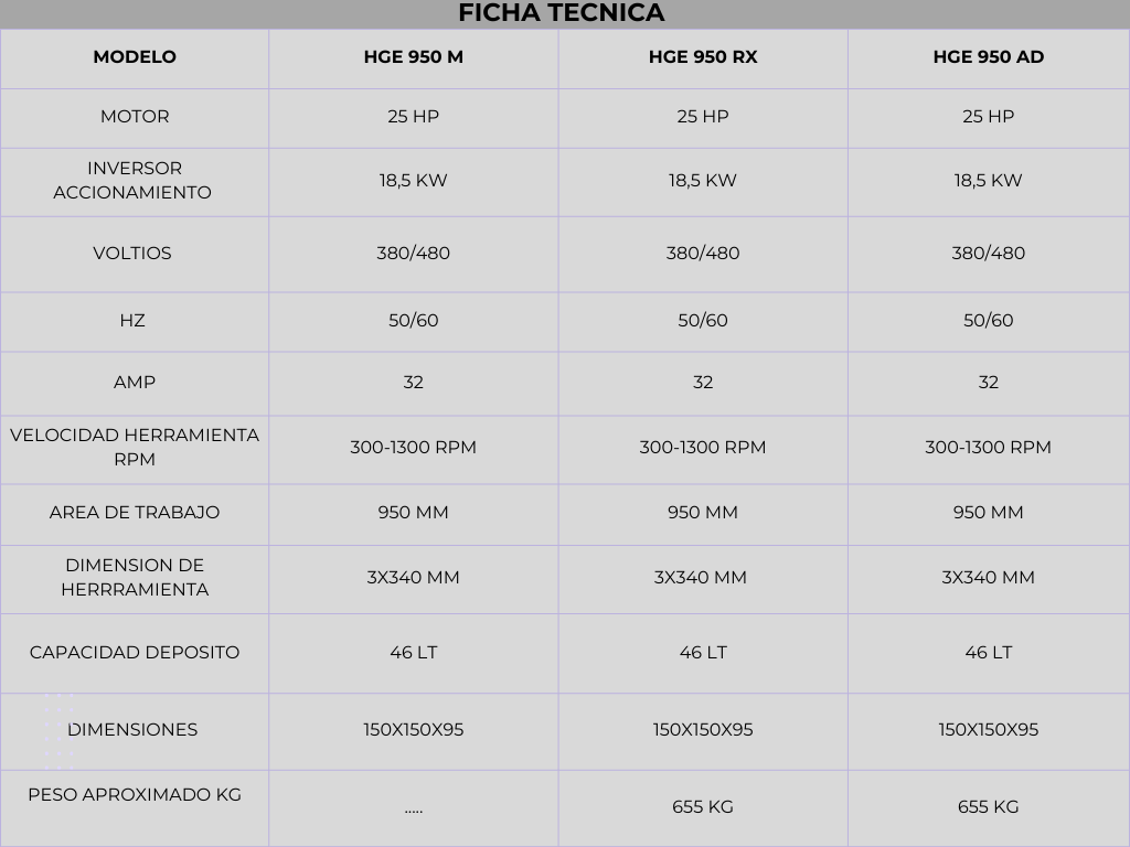 PRINCIPALES CARACTERÍSTICAS DE HGE 950 M/RX/AD