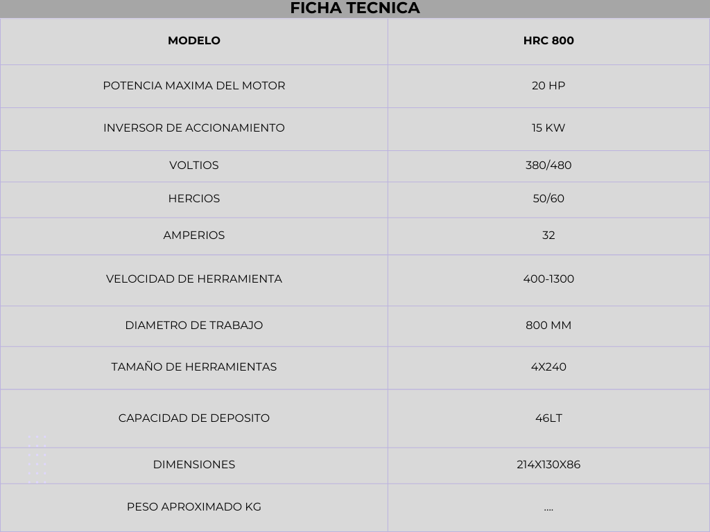 PRINCIPALES CARACTERÍSTICAS DE HRC 800