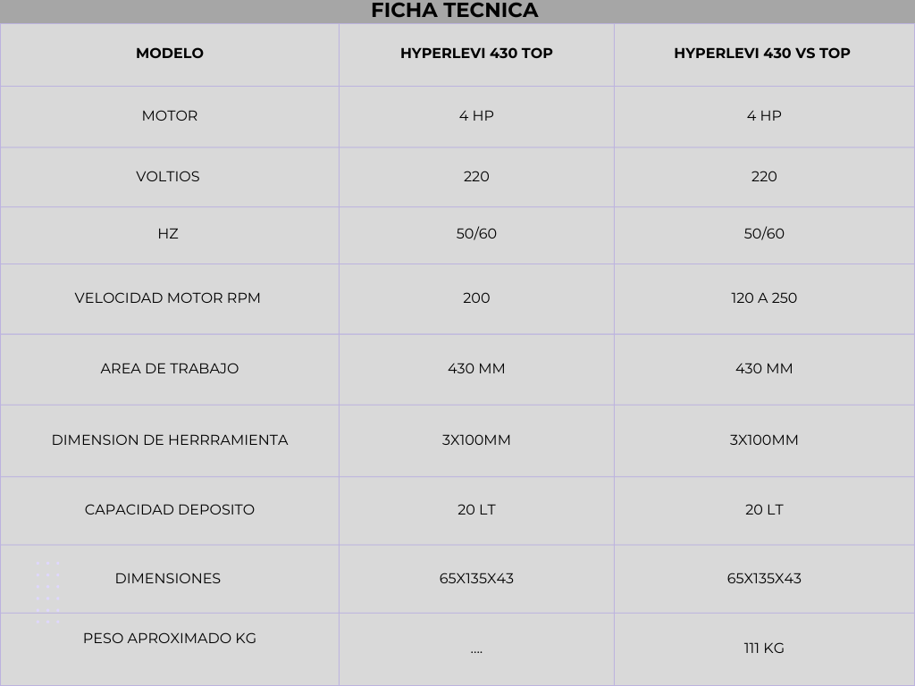 - Versátil: La gama completa de accesorios hace que Hyperlevi sea adecuado para cualquier situación.