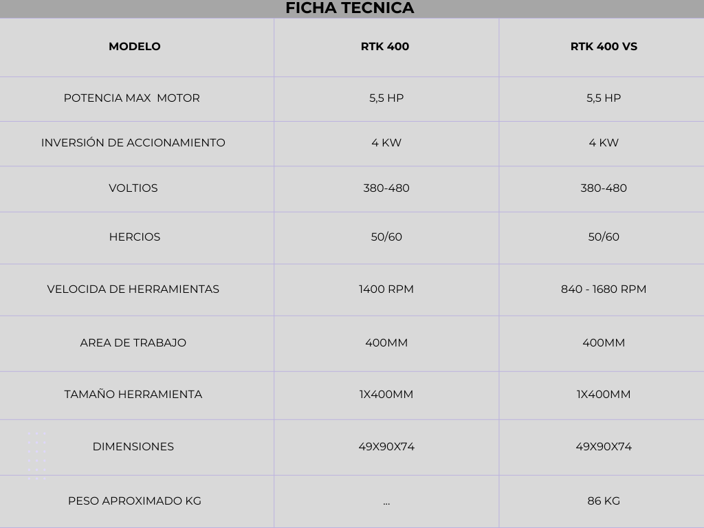 - Portaherramientas montados en una junta flotante que sigue el piso en todo momento.